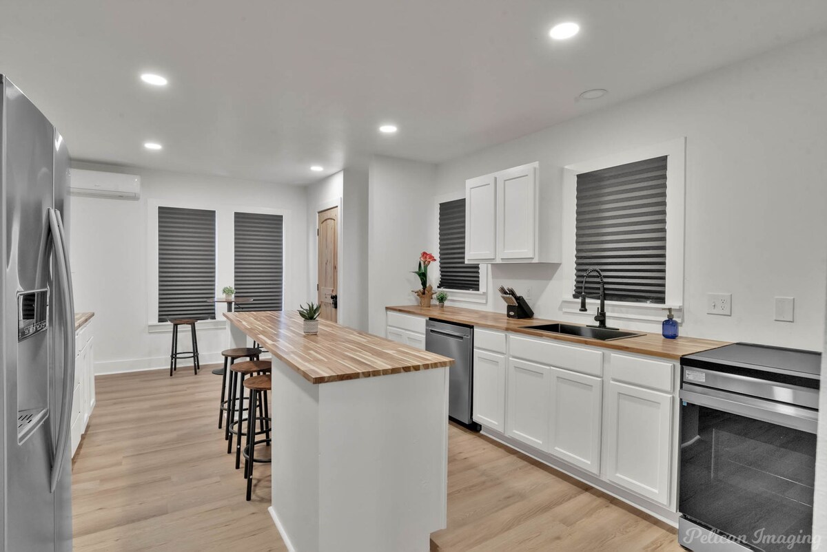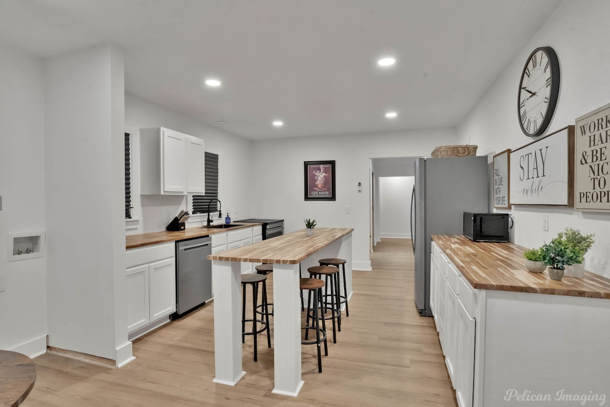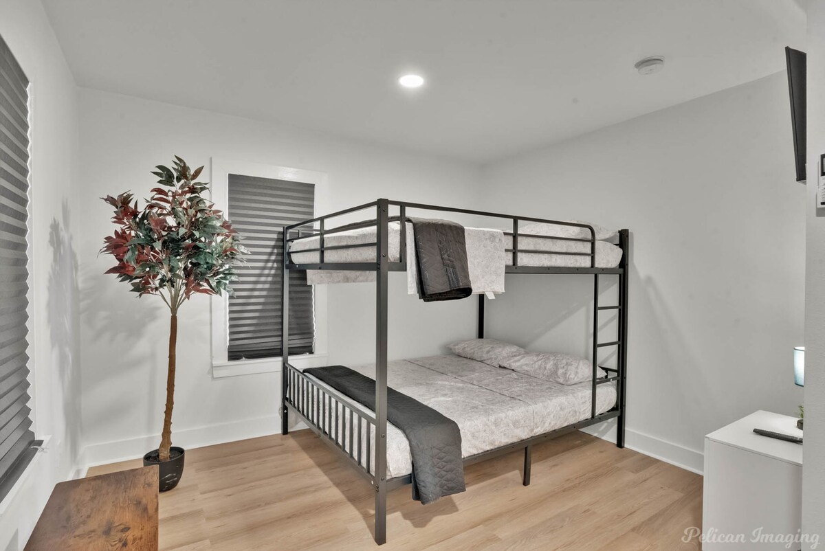 ShreveportFully remodeled home designed for large work crews, offering comfort, space, and high-end finishes throughout. It features five queen-over-queen bunk beds, comfortably sleeping up to 13 guests. The modern kitchen is equipped with top-of-the-line stainless steel appliances and all essential cookware. Two spacious full bathrooms with great water pressure. Additional amenities include central heating and air conditioning, an in-unit washer and dryer, ample parking for work trucks and trailers.