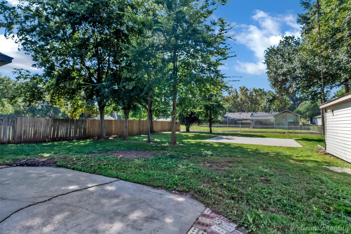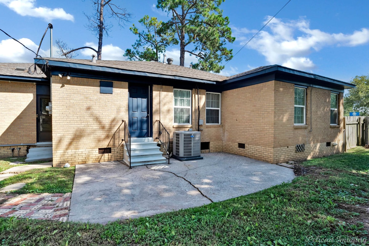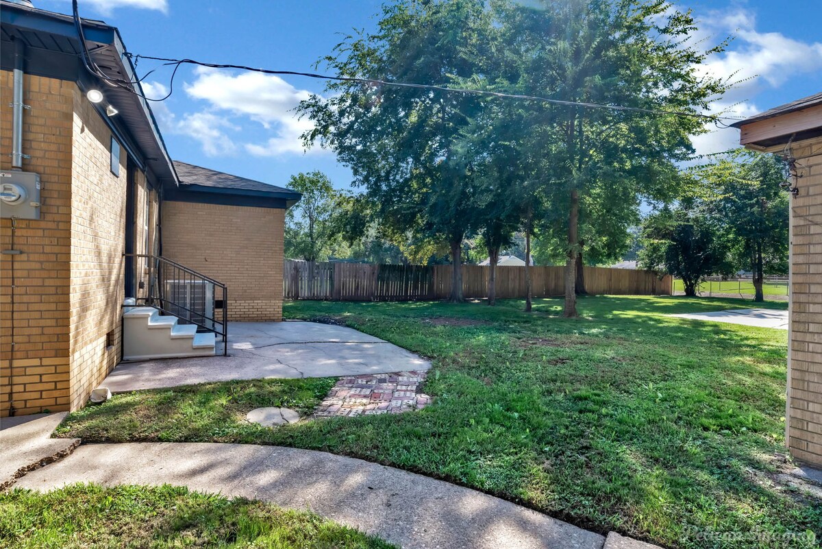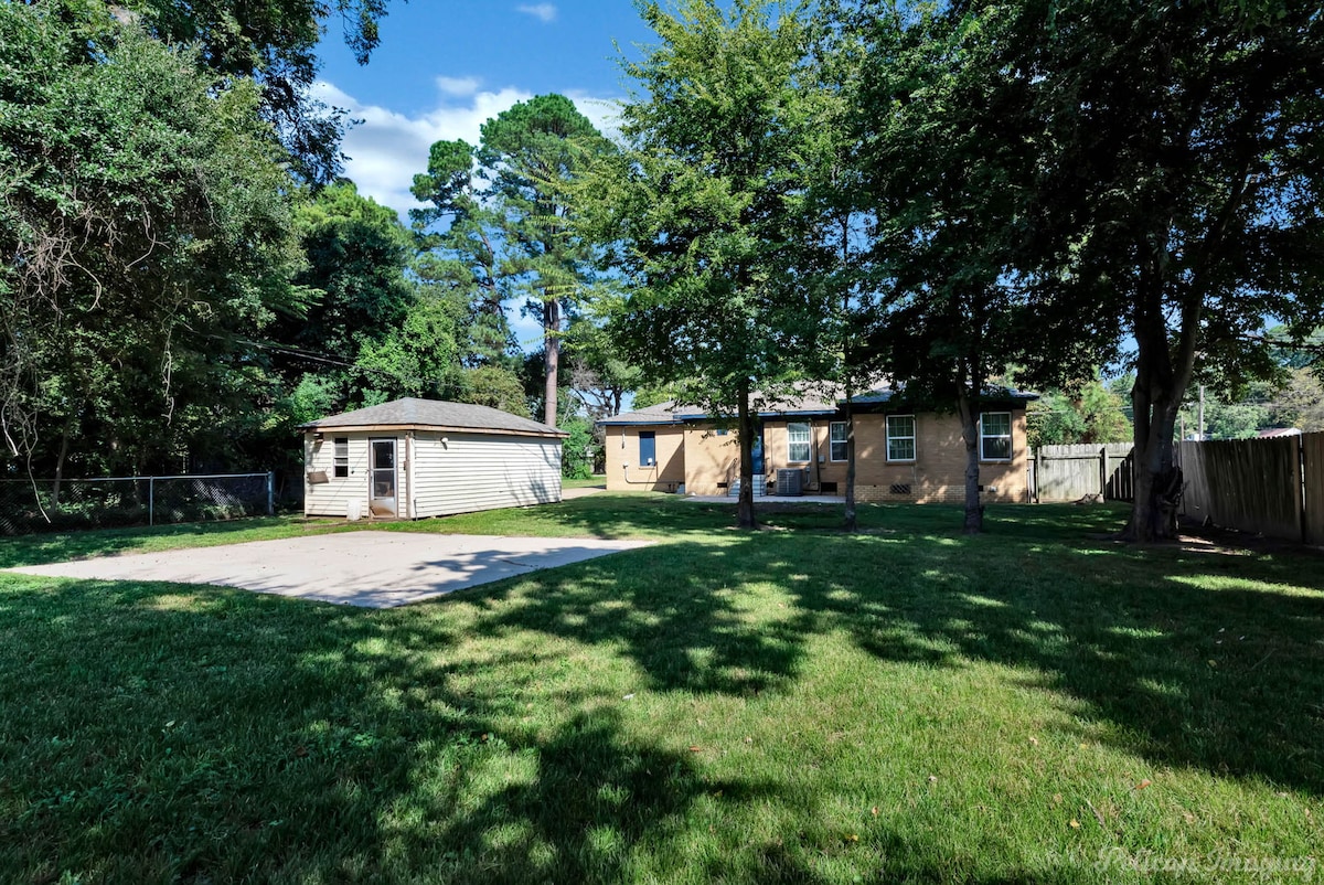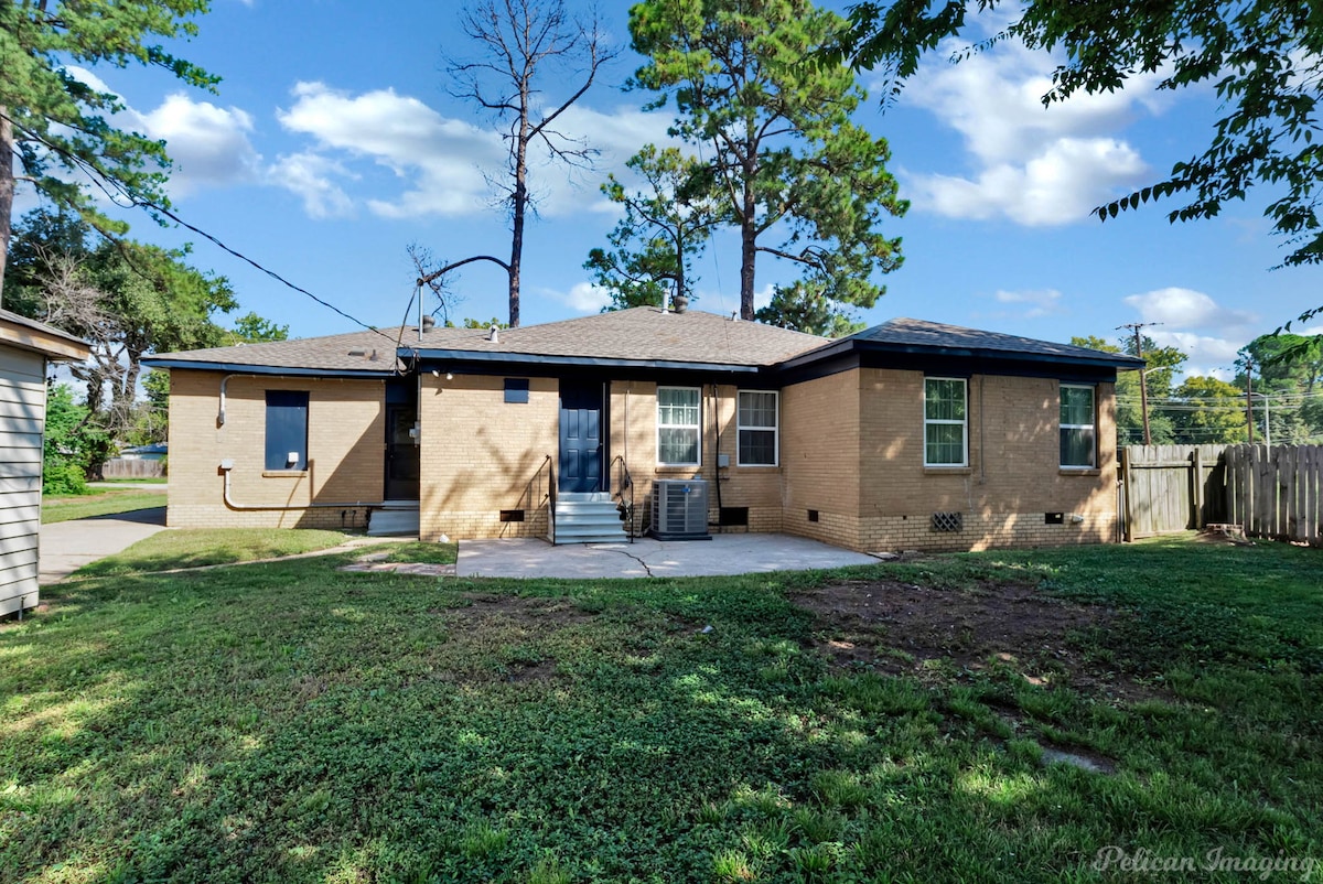 Welcome to Peachy Keen, located in the heart of Shreveport! This spacious 3-BR, 2- full bathroom house sleeps up to 8 guests and is perfect for long-term travelers. It's just 8 minutes from all major casinos, Barksdale Air Force Base, and Brookshire Grocery Arena. Sleeping arrangements are as follows: two twin trundle beds, two queen beds, one full, and one king bed. All bedrooms have TV's. Fully equipped kitchen, in-unit washer and dryer, garage parking, and a large backyard.