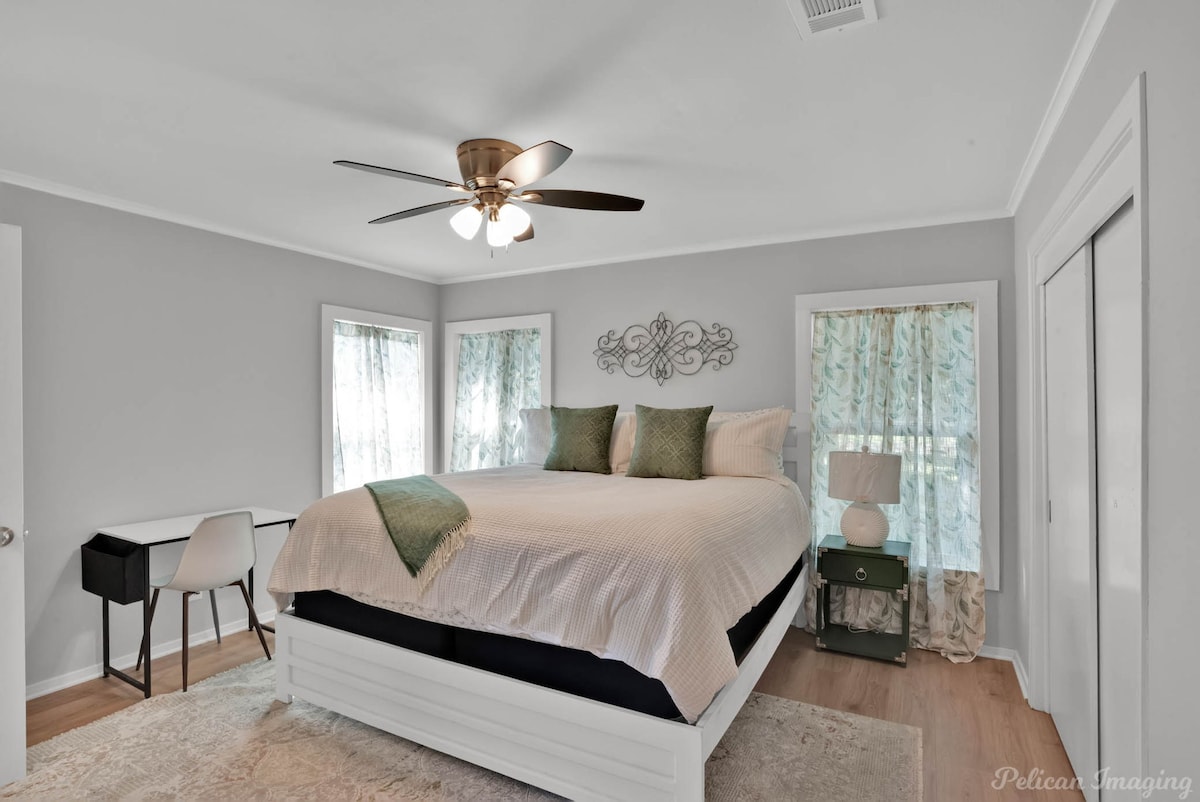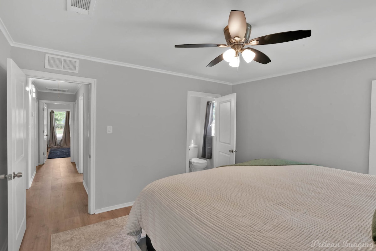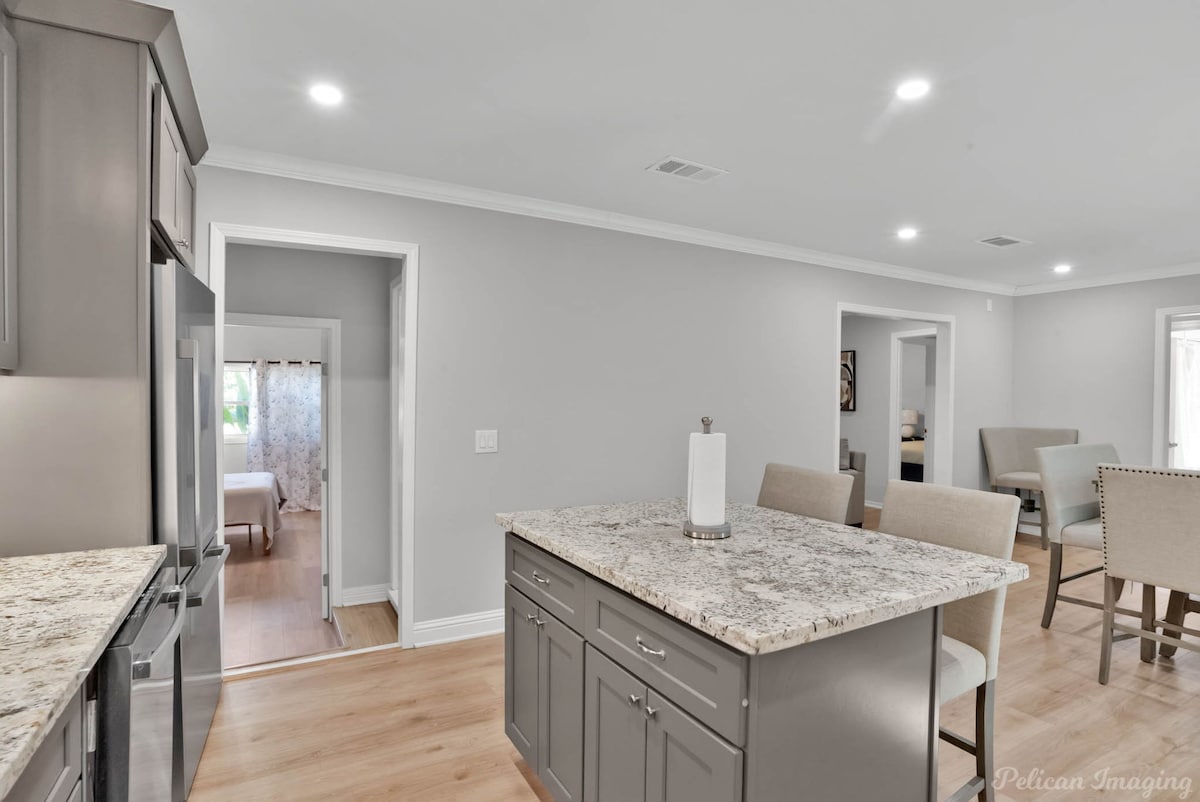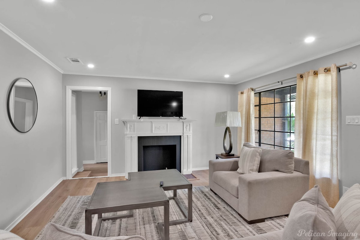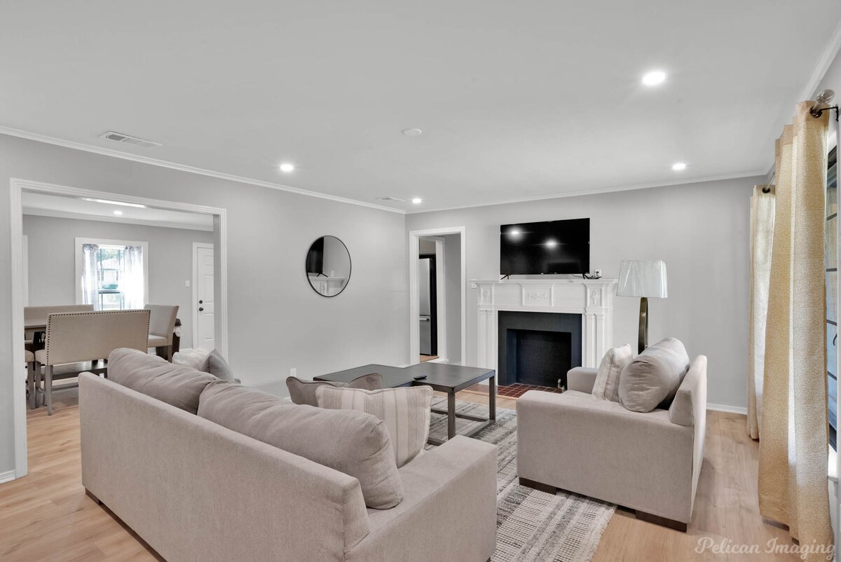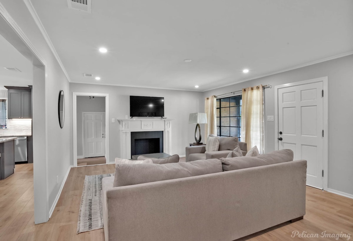 Welcome to Peachy Keen, located in the heart of Shreveport! This spacious 3-BR, 2- full bathroom house sleeps up to 8 guests and is perfect for long-term travelers. It's just 8 minutes from all major casinos, Barksdale Air Force Base, and Brookshire Grocery Arena. Sleeping arrangements are as follows: two twin trundle beds, two queen beds, one full, and one king bed. All bedrooms have TV's. Fully equipped kitchen, in-unit washer and dryer, garage parking, and a large backyard.