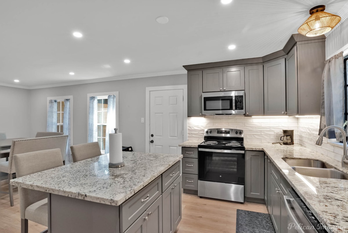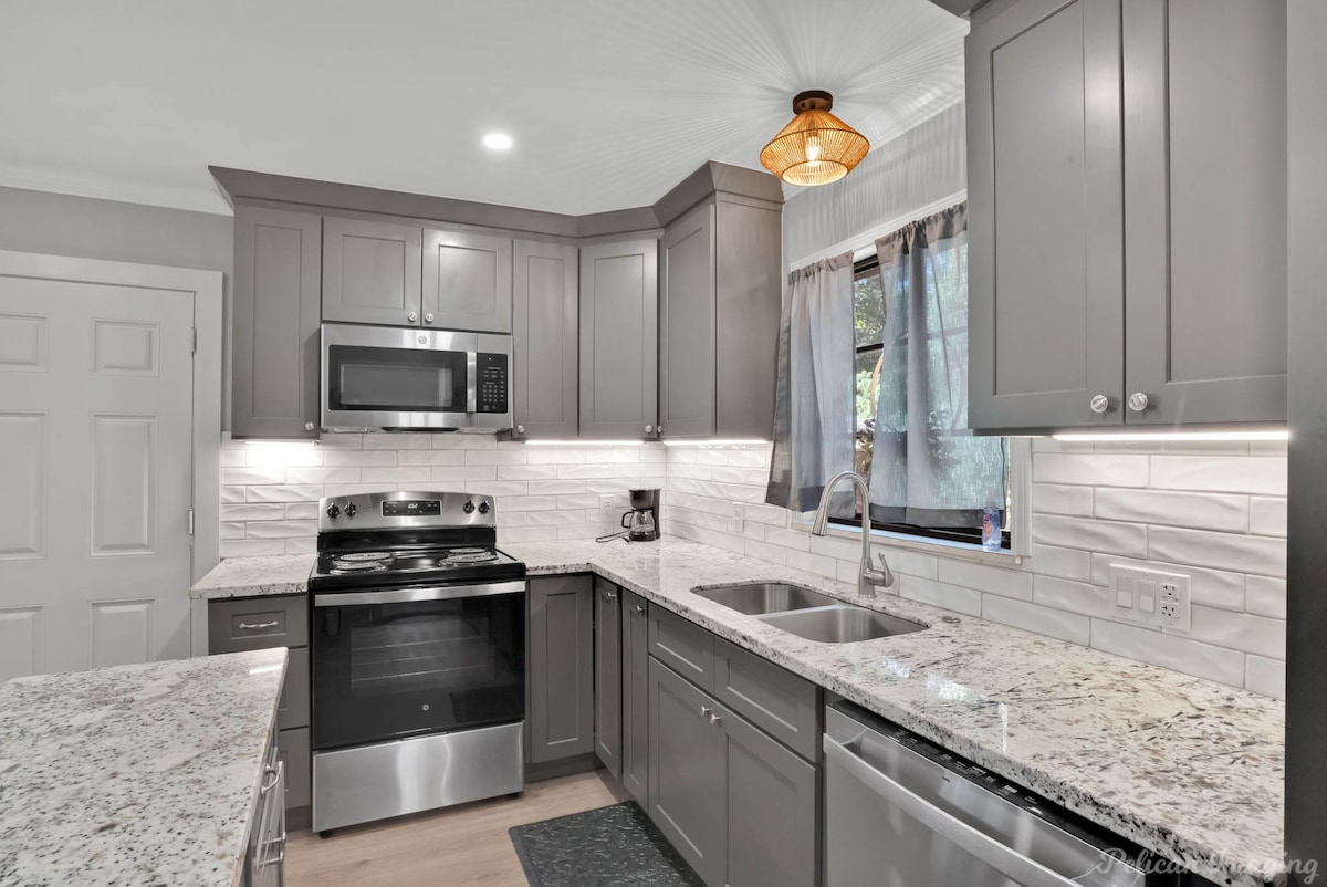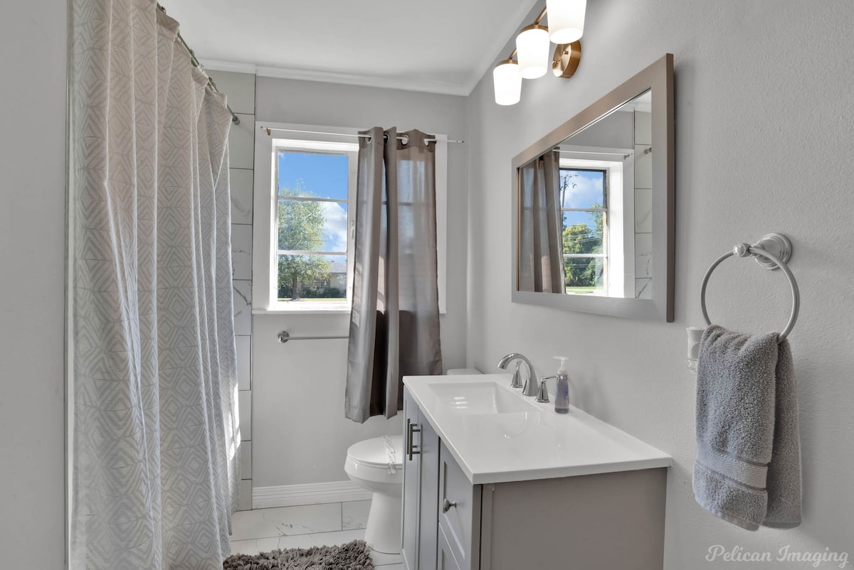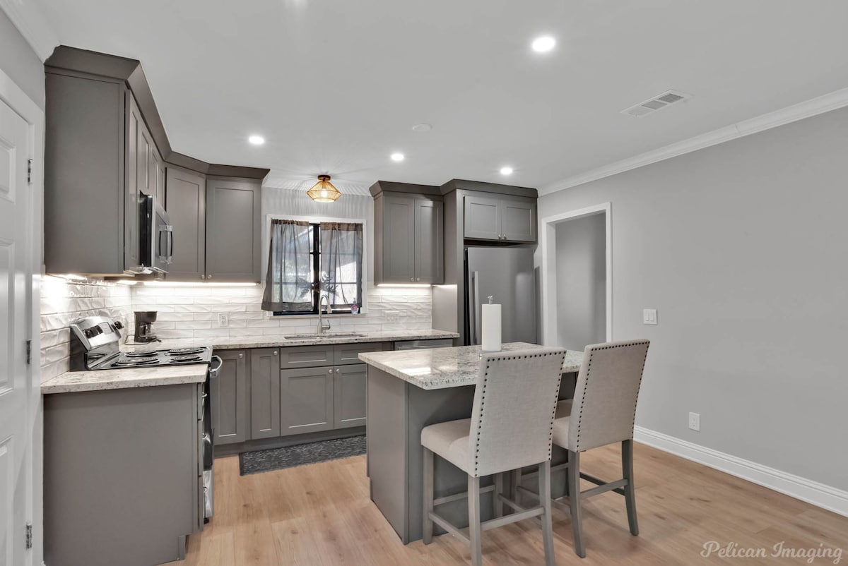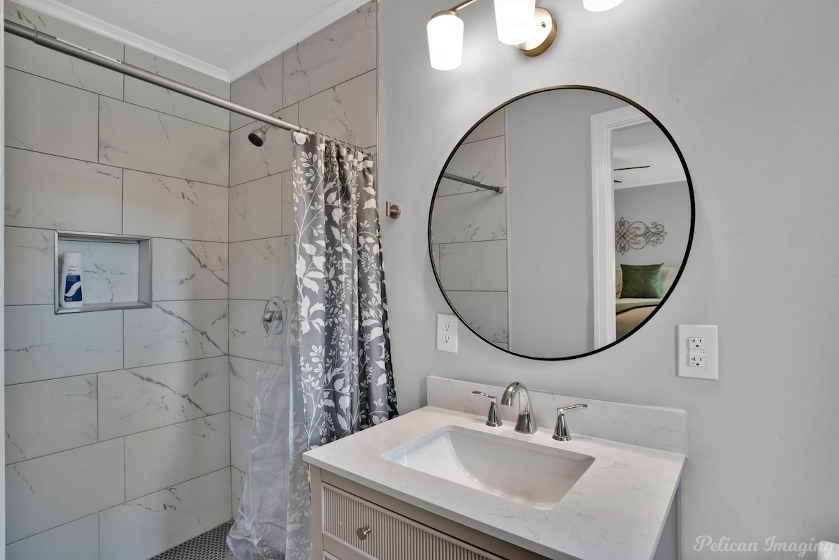 Welcome to Peachy Keen, located in the heart of Shreveport! This spacious 3-BR, 2- full bathroom house sleeps up to 8 guests and is perfect for long-term travelers. It's just 8 minutes from all major casinos, Barksdale Air Force Base, and Brookshire Grocery Arena. Sleeping arrangements are as follows: two twin trundle beds, two queen beds, one full, and one king bed. All bedrooms have TV's. Fully equipped kitchen, in-unit washer and dryer, garage parking, and a large backyard.